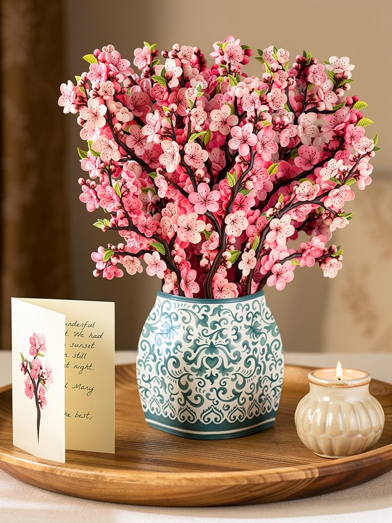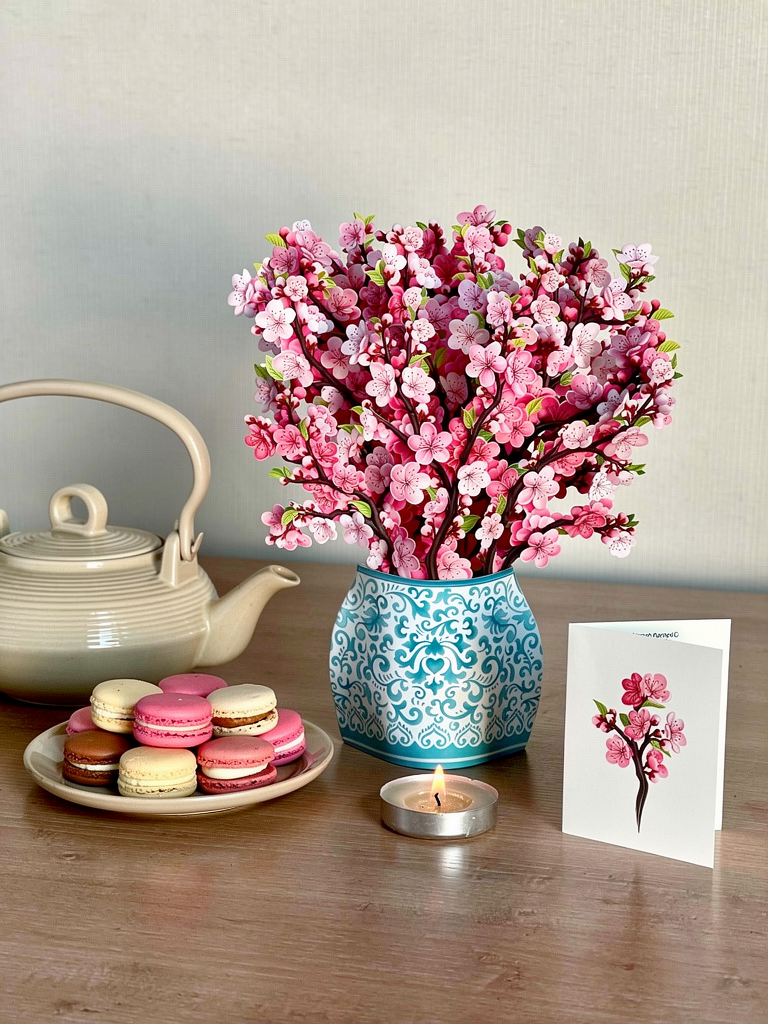 Discover our Sakura bouquet, a symbol of fleeting spring. Native to Asia, especially Japan, where it holds deep spiritual meaning, the sakura enchants with its delicate beauty. Crafted from recycled cardboard, our bouquet preserves this elegance to last forever. Add a touch of grace to your space, an ode to beauty and constant renewal.